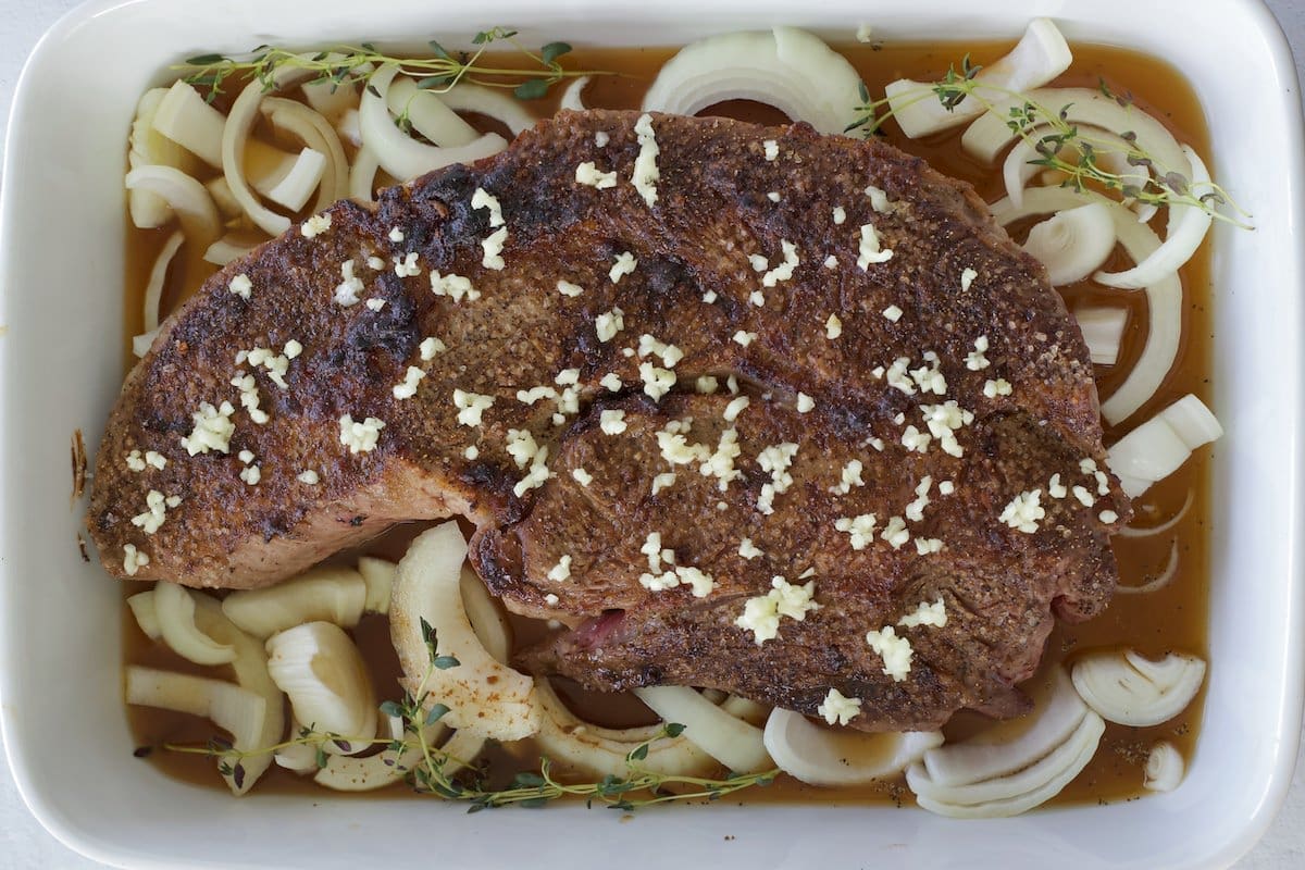 Chuck roast comes from the shoulder of the cow, a well-worked muscle that’s naturally rich in connective tissue and marbling. That combination is what gives it its deep, beefy flavor, but it’s also why it needs to be cooked low and slow.